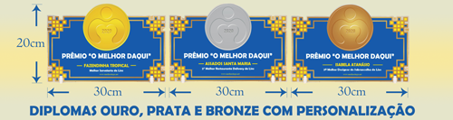 1. DIPLOMA PERSONALIZADO: nosso lindo diploma (20x30cm) fabricado em acrílico com impressão HD da imagem de nossa exclusiva medalha Ouro, Prata ou Bronze, personalizado com o nome e o segmento comercial da sua empresa, para ser usado de pé, como troféu, ou fixado na parede.